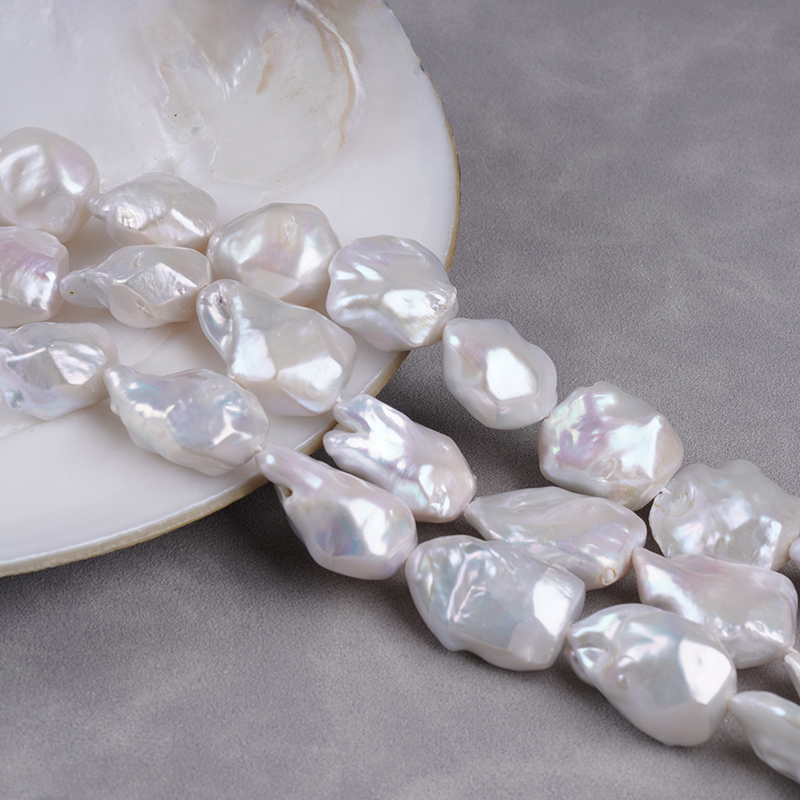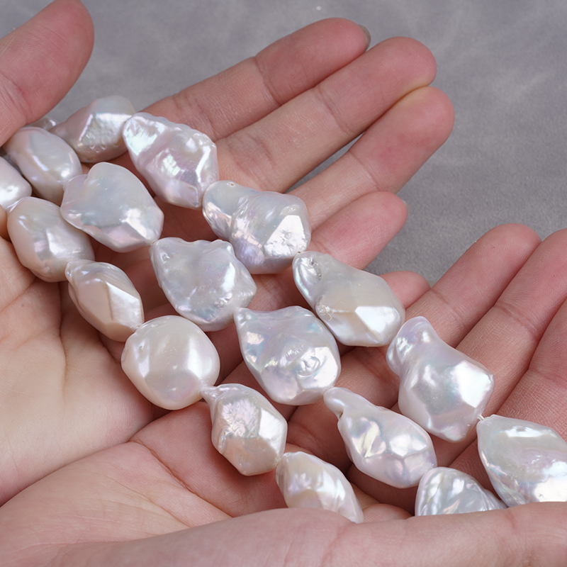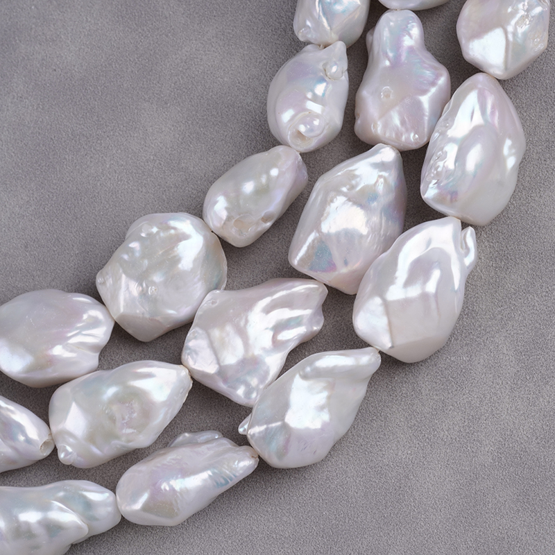 مورد سلسلة لؤلؤة المياه العذبة 15-20 مم لون أبيض سلسلة لؤلؤة باروك المياه العذبة
