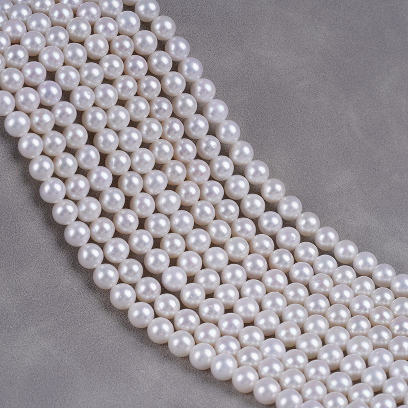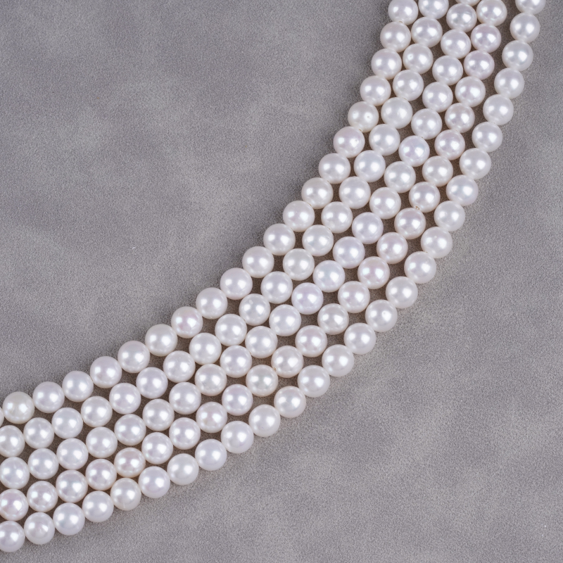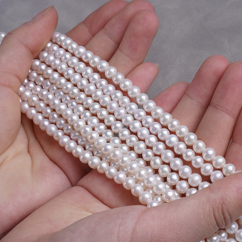 سلسلة لؤلؤ مياه عذبة بالجملة 6-6.5 مم شكل دائري سلسلة لؤلؤ مياه عذبة