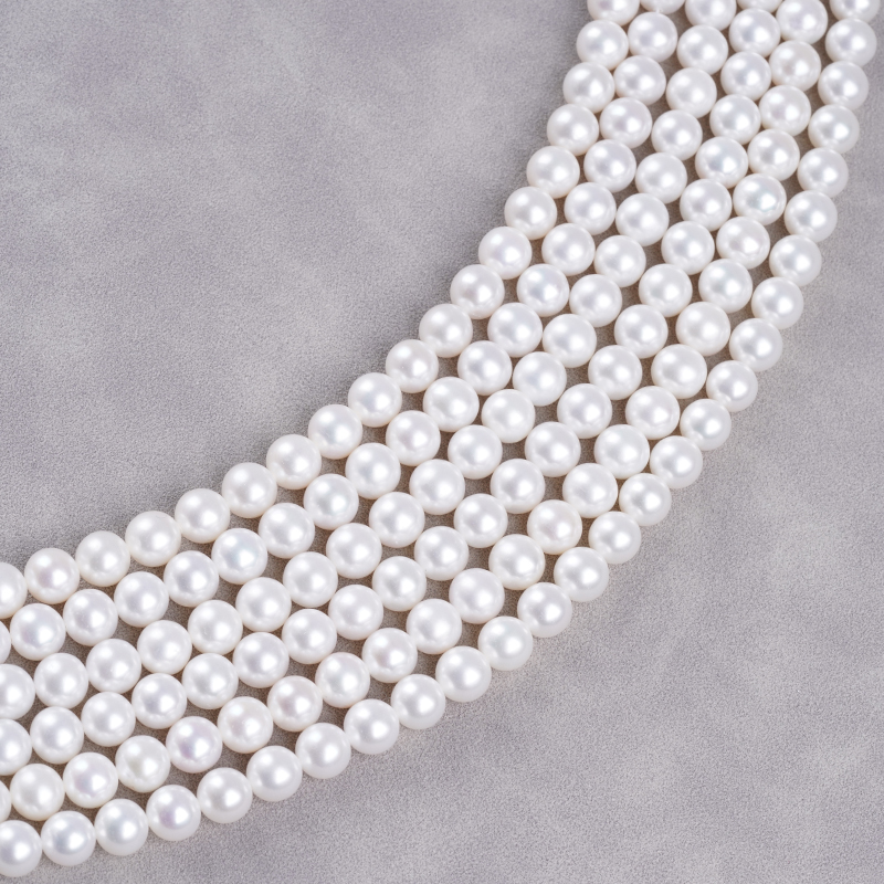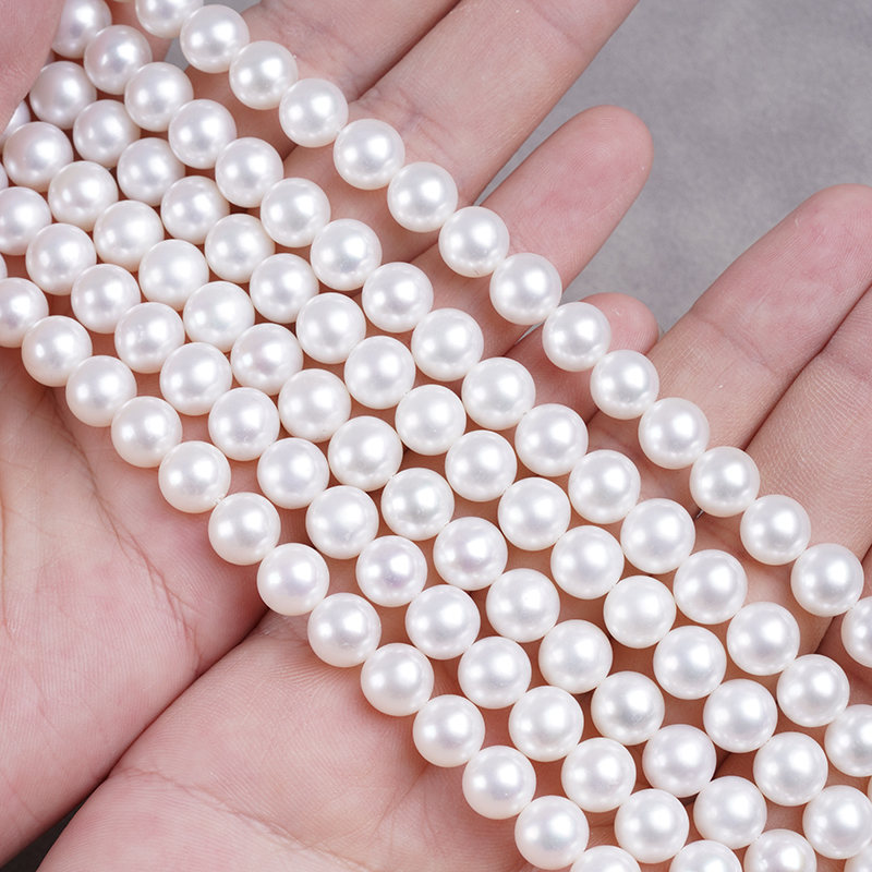 7-8 مم شكل دائري سلسلة لؤلؤ أكويا الصيني لؤلؤة المياه العذبة الطبيعية لصنع قلادة