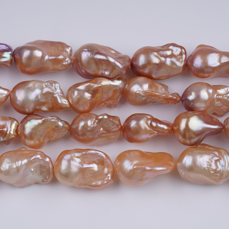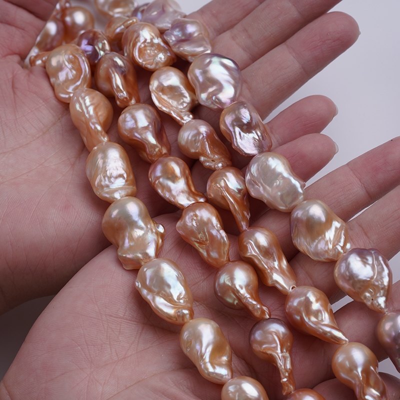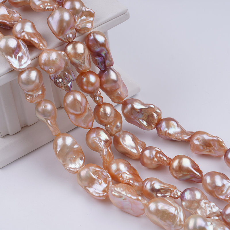 خيط لؤلؤ باروكي مياه عذبة بلون وردي طبيعي لصنع المجوهرات