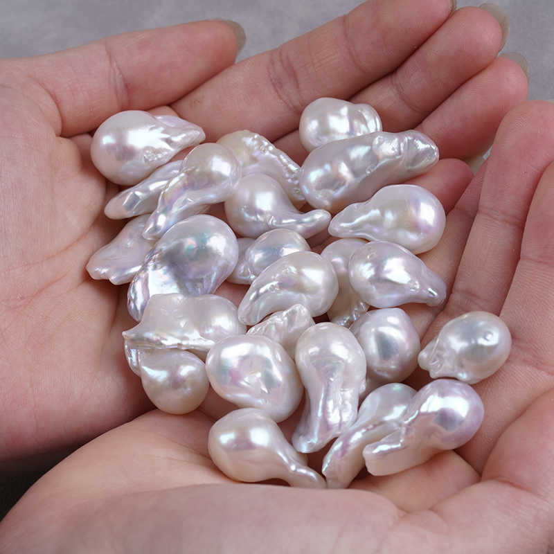 مورد لؤلؤ فضفاض 15-18 مم لؤلؤة باروك بيضاء من المياه العذبة خرزة فضفاضة لصنع المجوهرات