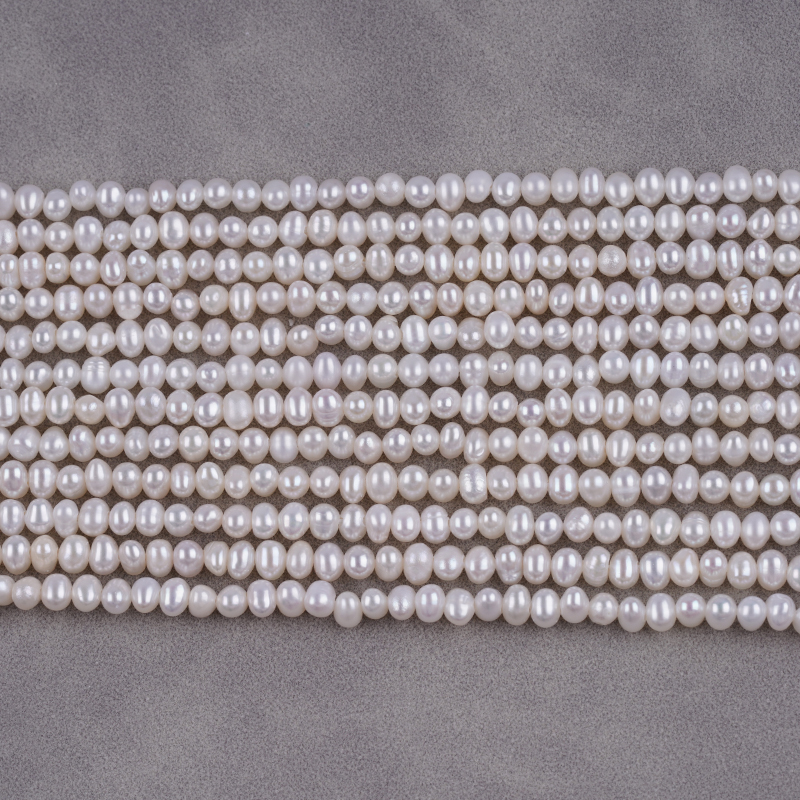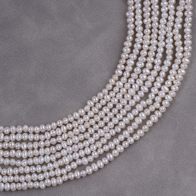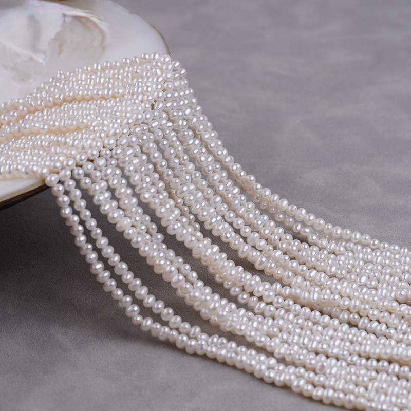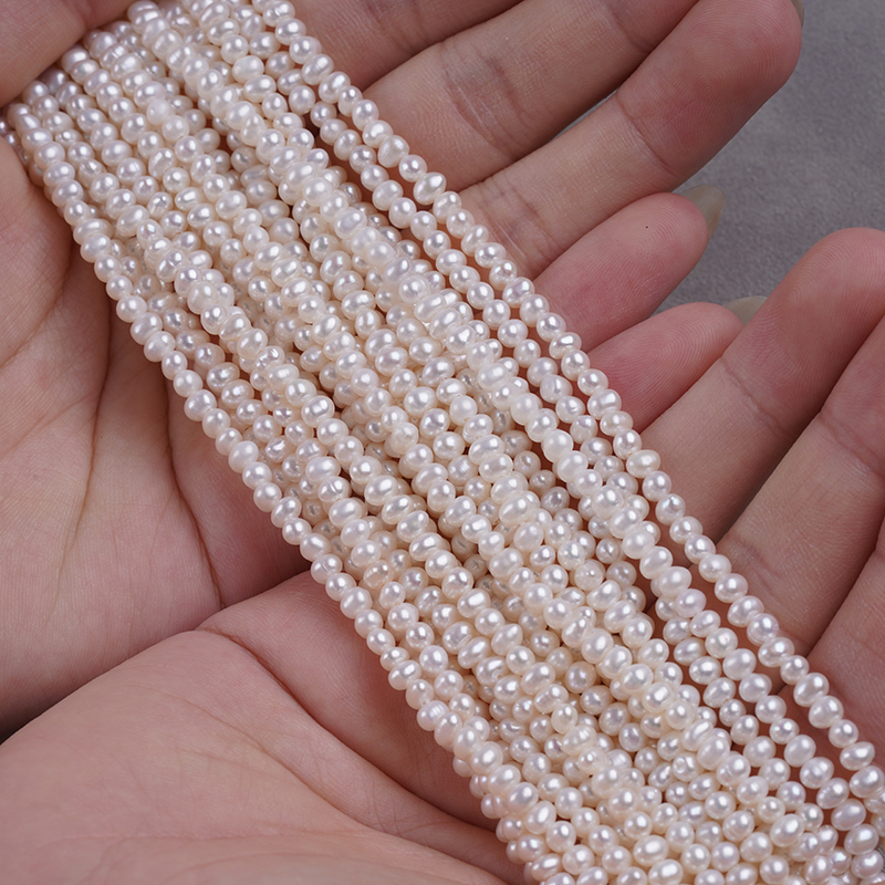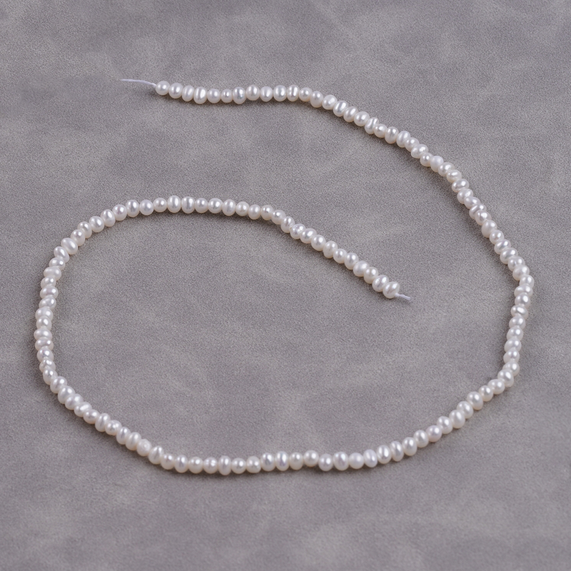 مصنع سلسلة اللؤلؤ 3-3.5 مم لون أبيض شكل البطاطس سلسلة لؤلؤ مياه عذبة
